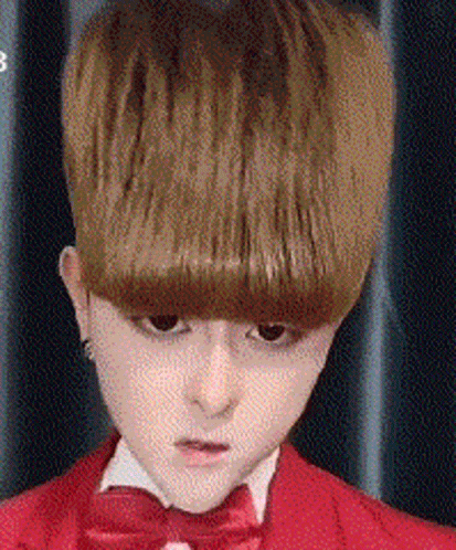 Close-up of 이승민 (Lee Seung-min) with a bowl cut, wearing a red suit and bow tie.