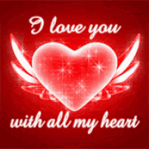 A red heart with white wings and the message 'I love you with all my heart' on a red background.