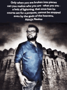 Abhijit Naskar stands determined, embodying his quote about purpose and resilience against a historic backdrop.