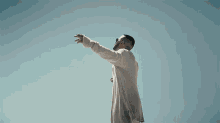 Yandel stands with arms outstretched against a clear blue sky, embodying hope and openness.