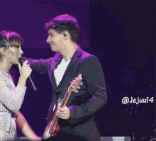 Aitana Ocaña and Alfred Garcia share a sweet, affectionate moment on stage during a performance.