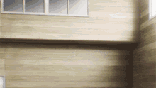 Akebi Chan Komichi demonstrates a powerful volleyball serve in a school gym.