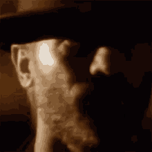 Barry Gibb, wearing a cowboy hat, looks around with an alerted, observing expression.
