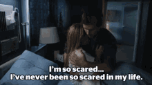 Amy Fleming is comforted by Ty Borden, expressing deep fear with the on-screen text 'I'm so scared...'