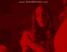 Andromachi, representing Cyprus at Eurovision, seen in a dramatic red-lit setting with a Bandicam watermark.