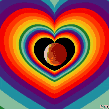 A colorful rainbow heart with a crescent moon in the middle, warming like the sun.