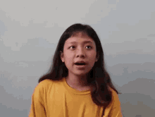 Aliana Villarosa in a yellow shirt makes funny, confused, and disgusted faces, exclaiming 'Ano Ba Yan'.