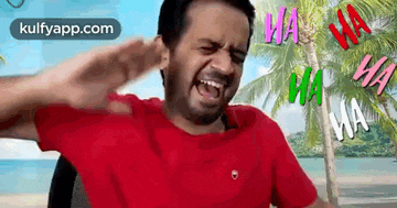 Man laughing hysterically with 'WA WA WA' text, a funny April Fool's moment.