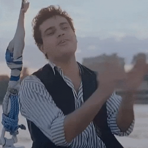 Amr Diab performing an Arabian song on a boat, clapping along to the music.