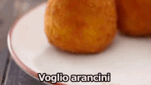 Close-up of a delicious arancino, a traditional Sicilian fried rice ball, with the text 'I want arancini'.
