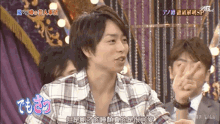 Sakurai Sho and Aiba Masaki from Arashi Ni Shiyagare share a laugh, with Aiba Masaki covering his face.