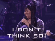 Aretha Franklin, the Queen of Soul, emphatically states 'I DON'T THINK SO!' while holding a microphone on stage.