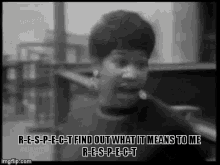 Aretha Franklin performs her iconic song "Respect," with the famous lyrics displayed on screen.