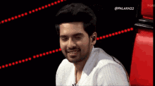 Armaan Malik, the Indian singer, smiles charmingly while sitting in a white sweater.