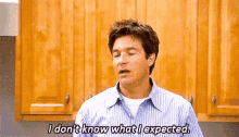 Jason Bateman as Michael Bluth from Arrested Development delivers his iconic line, 'I don't know what I expected.'
