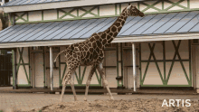 A majestic giraffe walks gracefully in its enclosure at Artis Zoo in Amsterdam.
