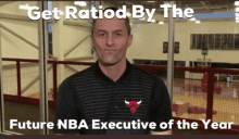 Arturas Karnisovas, wearing a Chicago Bulls shirt, is recognized as the future NBA Executive of the Year.