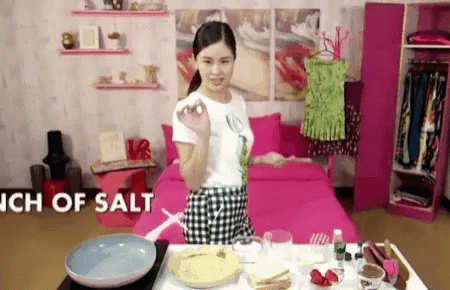 Kisses Delavin demonstrates a 'Pinch Of Salt' in a vibrant pink room, featuring Donny and Zeke.