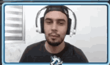 A man wearing headphones and a cap, with an Audaz logo on his shirt, talking during a live stream.
