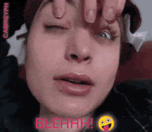 Audreyhilfiger makes a playful 'bleh' face, teasing the viewer with wide eyes and sticking out her tongue.