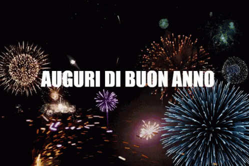 Colorful fireworks light up the night sky with the Italian greeting 'Auguri Di Buon Anno' (Happy New Year).