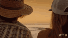 John B and a woman look out at the ocean at sunset, with the caption 'Back In The G-Game, Baby'.