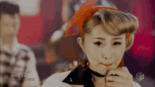 Japanese singer Aono Misaki, known as Bambina, performs with a retro look and microphone.