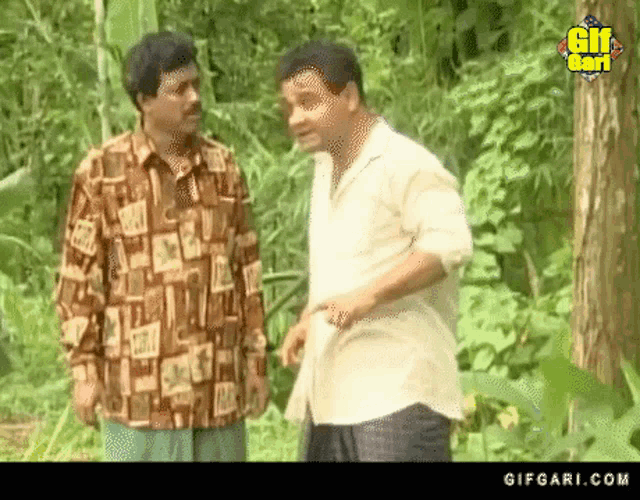 Bangladeshi actors Humayun Ahmed and Faruk Ahmed in a scene, with Faruk Ahmed pointing in a green outdoor setting.