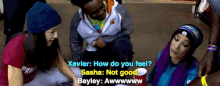 Bayley, Sasha Banks, and Xavier Woods react to Sasha feeling 'not good' during a casual conversation.