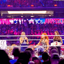 Becky Lynch makes her dynamic entrance into the wrestling ring, acknowledging the cheering crowd with a raised arm.