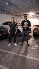 Josh King Madrid and another man give an inside look at the Jetsetfly lifestyle in a parking garage with luxury cars.