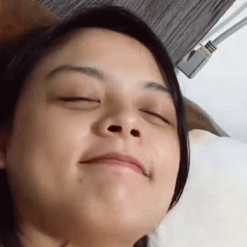Dane Manalad playfully sticks her tongue out while lying in bed with her eyes closed.