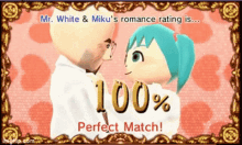 Walter White and Hatsune Miku achieve a 100% perfect romance rating in Tomodachi Life.