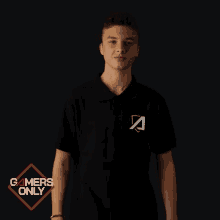 Błachu from Alsen Team strikes a confident pose, pointing and covering his face, against a 'Gamers Only' backdrop.