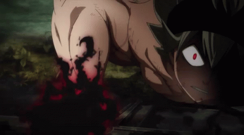 Asta from Black Clover in a powerful demon form, featuring a red eye and dark, swirling energy.