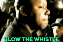 A referee, wearing a striped shirt, is shown with the text 'BLOW THE WHISTLE' overlaid.