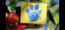 The iconic yellow notebook/box featuring the Blue's Clues logo with a blue paw print.