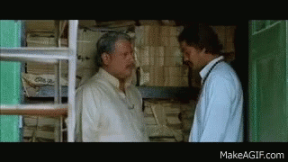 Two men from Bollywood's Gangs of Wasseypur engage in a serious conversation in a paper-filled room.
