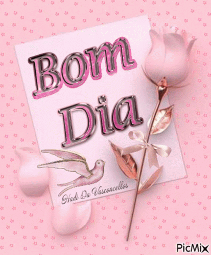A beautiful 'Good Morning' card featuring a pink rose, a flying bird, and the name Giadi Da Vasconcellos.