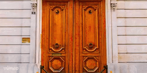 Ornate doors open to reveal the iconic Eiffel Tower in Paris, followed by the greeting 'BONJOUR'.
