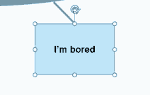 A light blue rectangle with the text 'I'm bored' rotates and moves, accompanied by a mouse cursor.