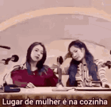 Two women discuss gender roles with captions: 'A woman's place is in the kitchen' and 'If the Pope were a woman...'