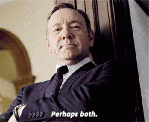 Kevin Spacey, as Frank Underwood, says "Perhaps both" with a knowing look.