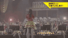 HKT48's Rino Sashihara conducts a brass band performance of 'Flying Get' on stage.
