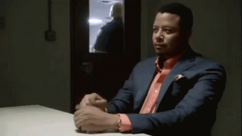 Two men, one in a suit and another in a green scrub suit, sit at a table in an intense conversation.