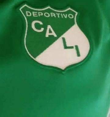 A close-up shot of the green and white shield logo for the Deportivo Cali football club.