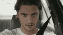 Callum Borghese, also known as Luke Grimes, looking serious while sitting in a car with a seatbelt on.