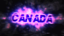 The word 'CANADA' displayed in a vibrant, glowing neon text effect with blue and pink hues.