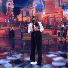 A talented singer performs on the stage of Got Talent España, captivating the audience with her powerful voice.