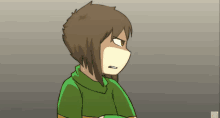 Chara from Undertale, looking determined while clutching their iconic Heart Locket.